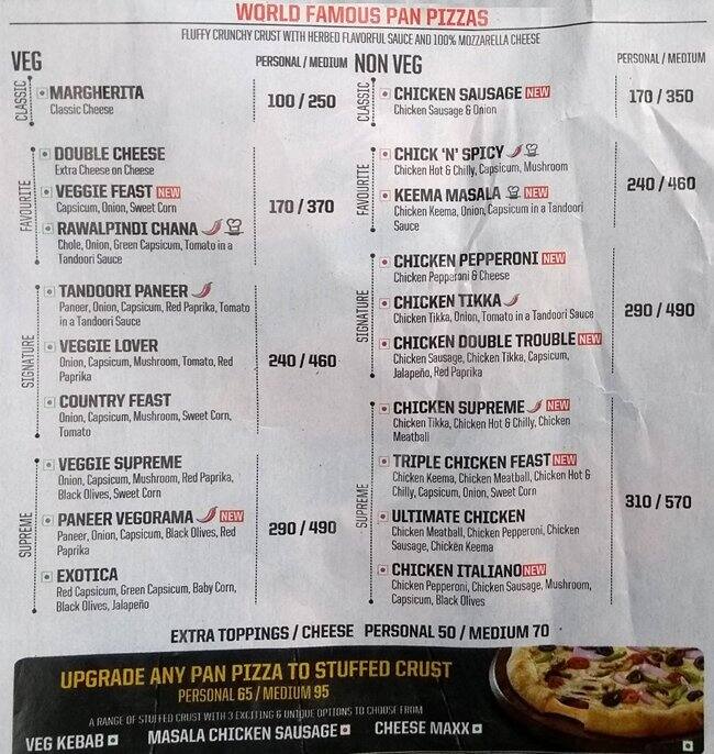 Pizza Hut Menu Menu For Pizza Hut Nit Faridabad
