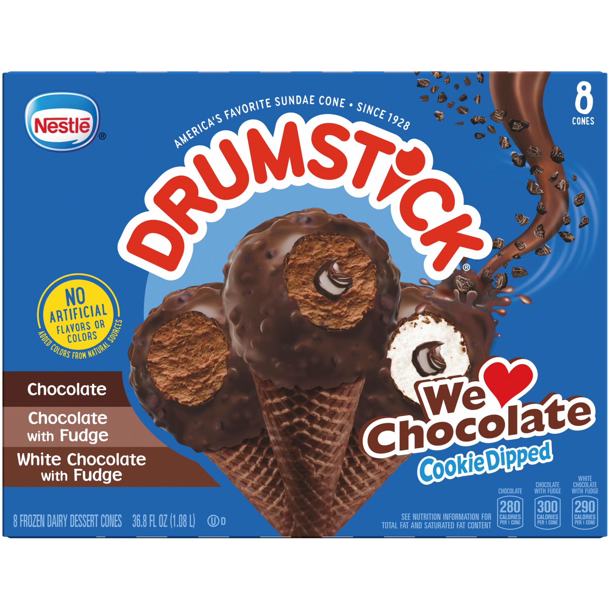 Nestle ice cream cone chocolate. Dairy from Canadian cows. DRUMSTICK Chocolate Sundae Cones 4-Pack Nutrition Information. Get full nutrition facts for other Nestle products and all your other favorite brands.