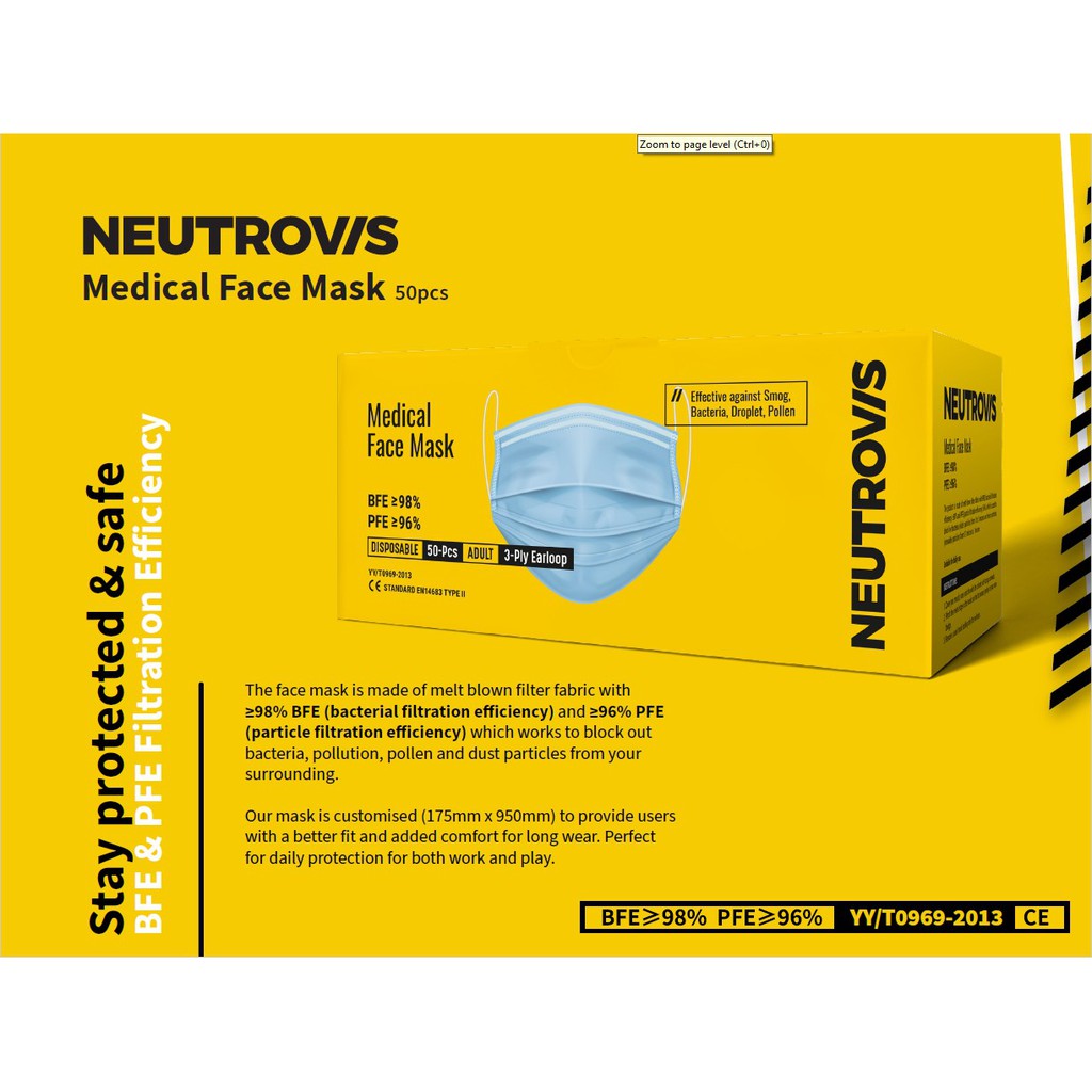 Neutrovis Medical 3 Ply Face Mask 50 S