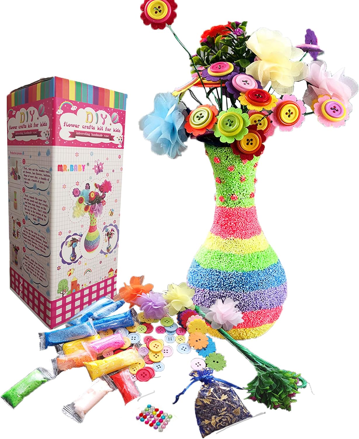 Amazon Com Mr Baby Flower Craft Kit Toy For Kids Diy Fun Crafts For Kids Crafts For Boys And Girls 4 5 6 7 8 9 10 Birthday Presents Rainbow Vase Toys Games