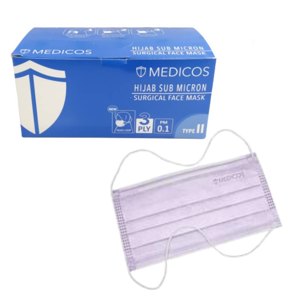 Medicos Hijab Adult 3 Ply Surgical Face Mask Purple Color Blue Color Head Loop 50 Pcs 1 Box Ready Stock Shopee Malaysia