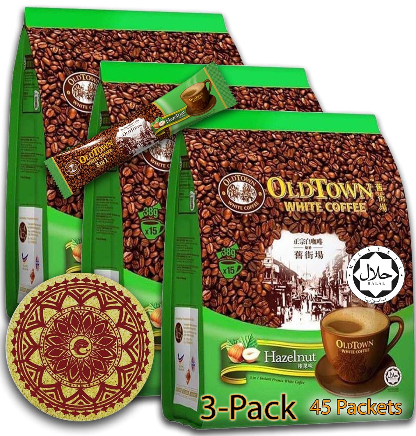 Amazon Com 3 Pack Hazelnut Old Town 3 In 1 Hazelnut White Coffee Asian Instant Coffee Whalever Eco Friendly Cork Coasters Package Oldtown White Coffee 45 Packets Grocery Gourmet Food